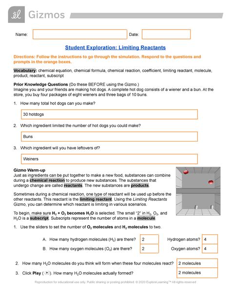 YVR - Reading Online STUDENT EXPLORATION LIMITING REACTANTS KEY Reader Library Genesis